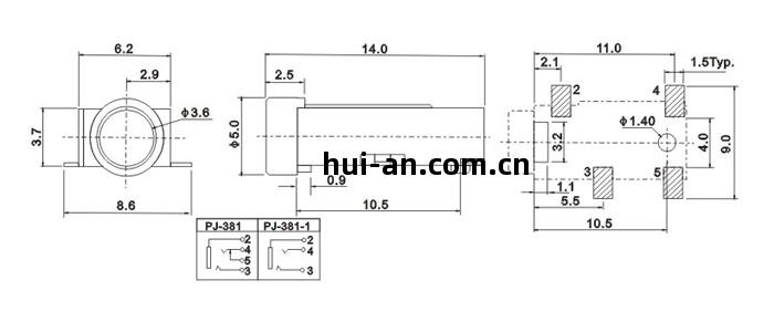 產(chan)品(pin)名稱(cheng):PJ-381 品(pin)名:3.5耳機(ji)插座(zuo) |